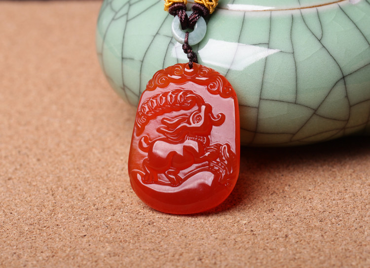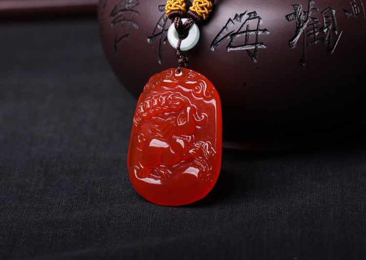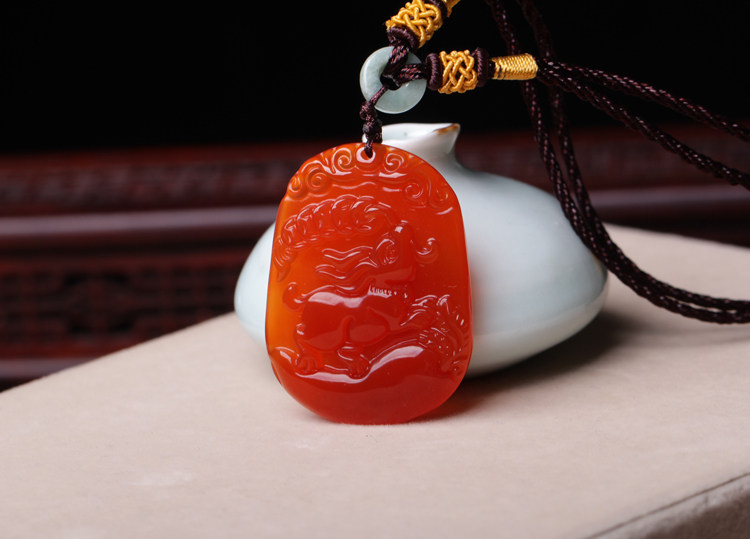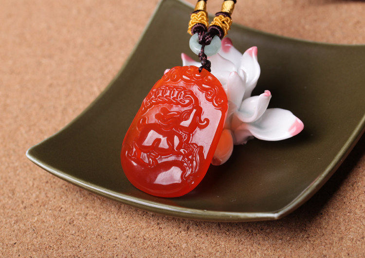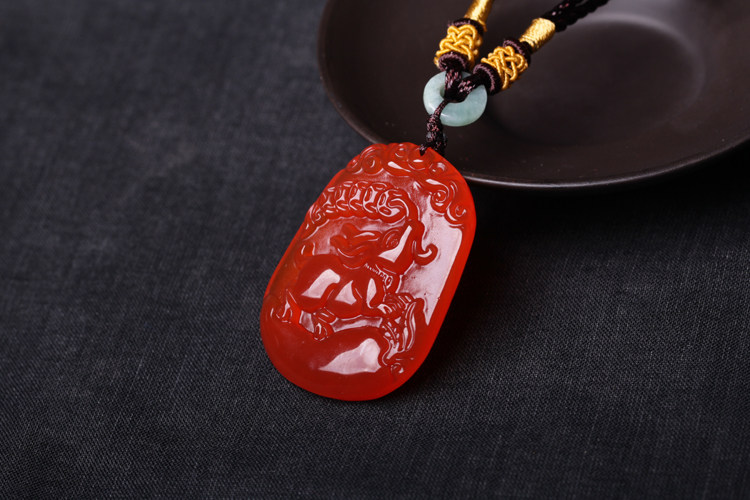 开光属猪人吉祥物吊坠 玉兔攀禄玛瑙项坠水晶饰品男女款