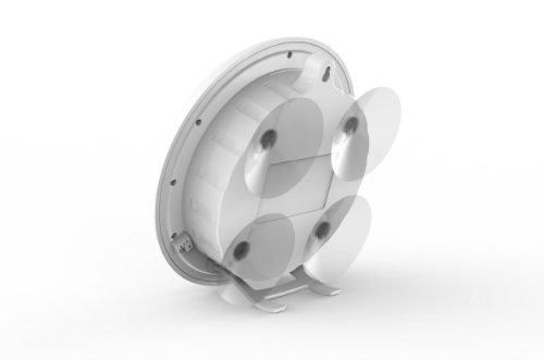Atomic Water Resistant LCD CLock with 1.5" time number and 5" Face. Can use the four large suction cup to attached to mirror or shower door. Also comes with stand for setting it on a table. Can also hang form the wall. Temperature and Date. Good for inside or outside. Uses 1 "AA" battery (not included). White color. Measures: 6" diameter x 2.25" deep.