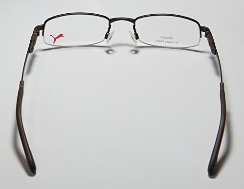 Brand: Puma Style: 15374 Svetlo Gender: unisex Frame Type: half-rim Frame Material: metal Case: eleganzo The frame is fully rx-able and can be fitted with prescription and/or tinted lenses at most optical stores. Please note that factory demo lenses have a logo stamped on them in ink. These eyeglasses are made of corrosion resistant and strong metal. Please keep in mind that original case is not included with this frame. However, we will include an Eleganzo hard case at no extra charge to keep your eyeglasses protected. These eyeglasses retail for $140.00 at upscale stores that carry designer frames. Save your money and get them here! The pictures cannot fully reflect the beauty of this piece of designer eyewear. These eyeglasses look even more elegant in real life. This is one of the most popular Puma styles on the market right now. 0 |