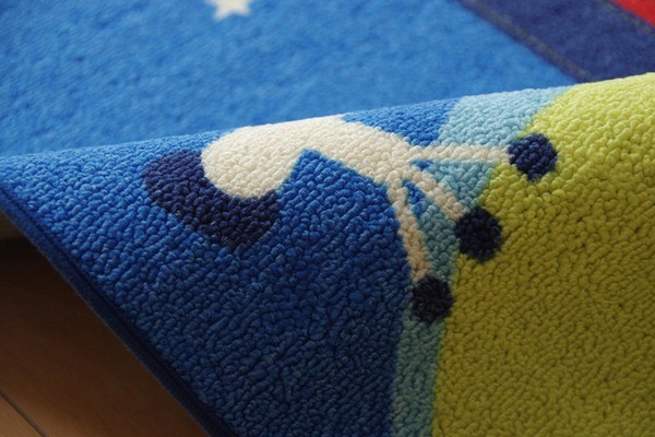 学習机用のデスクカーペットです。電車、自動車、バス、ヘリコプター、気球の柄が特徴です。表地はループタイプになっており、毛足が短く掃除がしやすい仕様になっています。裏地には不織布を使用していますので、フローリングが傷つきにくいです。お子様の学習机の下や、ベッドサイドなどにお勧めの商品です。