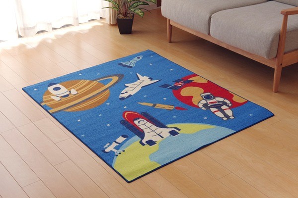 【商品名】デスクカーペット 男の子 宇宙柄 『スペース』 ブルー 110×133cm