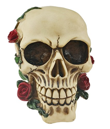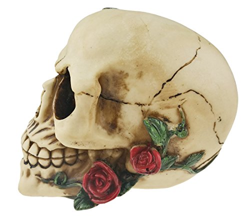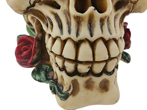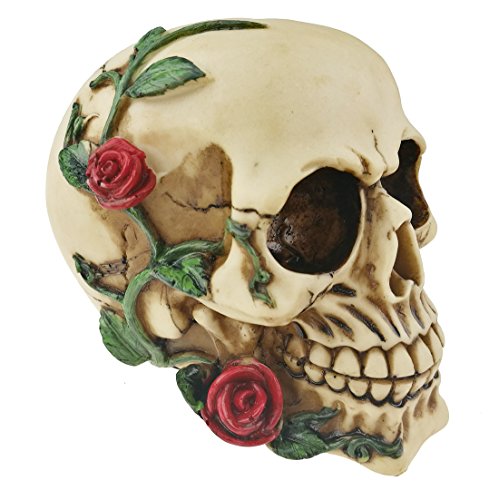 Characteristic Grinning Replica Realistic Human Skull With Rose Vines Statue