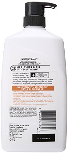 Flaunt hair with natural fullness and high-intensity strength against damage and hydrate your strands with Pantene Pro-V Full and Strong Conditioner. As part of the Pantene Pro-V damage-defying Powerful antioxidant system, this specially formulated conditioner helps protect and improve hair health inside and out while nourishing each strand. The result? Hair is left buoyant, flexible, and healthy-looking. Also try the full range of products in the Pantene Pro-V Full and Strong Collection to help defend against damage and accentuate your hair's natural body.Feature