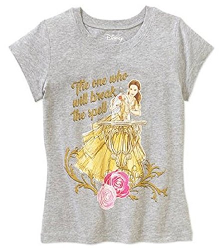 Your little one will be the one who breaks the spell in this girls' graphic tee inspired by the classic Disney animated film Beauty and the Beast. This T-shirt is made of soft cotton-blend jersey fabric and features a large and glittery graphic on the front with the Disney Princess Belle. Completing the short-sleeve tee are a ribbed crew neckline and a tag-free inner for a smooth feel on her skin. This officially licensed Belle T-shirt is available in a chic heather gray colorway and makes a great gift for young Disney fans.Feature