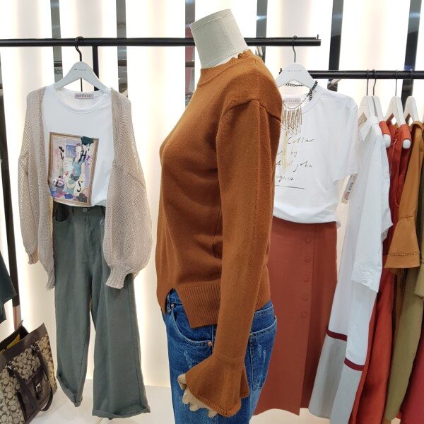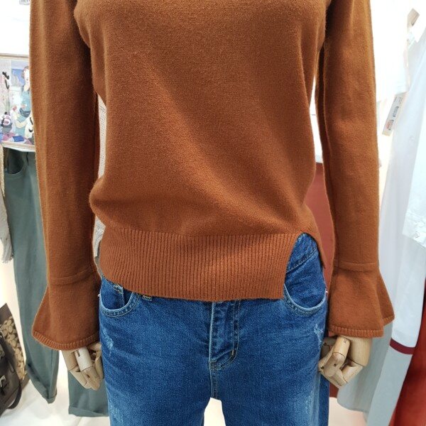 밑단 트임과 와이드커프스 디자인의 소매라인이 포인트인 라운드니트입니다.모혼방으로 따뜻하고 포근한 착용감이 있는 제품입니다.