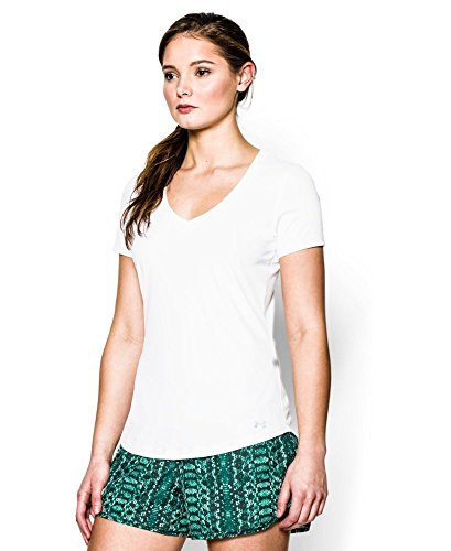 Your new favorite T-shirt Soft, brushed construction delivers superior temperature regulation while you run Signature Moisture Transport System wicks sweat to keep you dry and light Shaped hem delivers enhanced coverage without looking big and bulky Feminine V-neck and low-profile sleeves UPF 30+ protects your skin from sun damage and premature aging 360 reflectivity.Feature