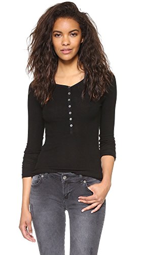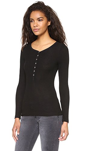 GETTING BACK TO SQUARE ONE Women's Long Sleeve Henley Top, Black, Small