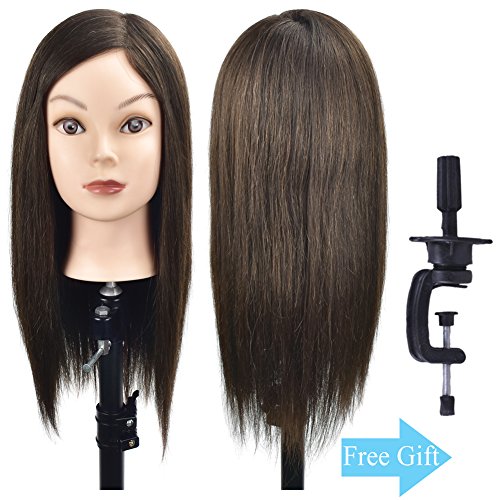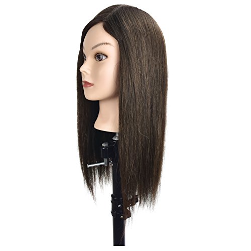 Ba Sha Professional 18" 50% Human Hair Mannequin Head Training Head Cosmetology Hair Styling Head Manikin Head Doll Head with Free Clamp