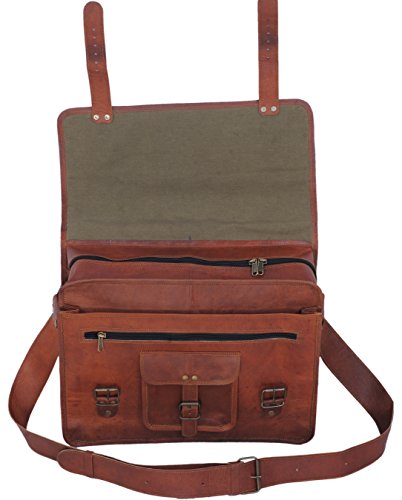-. Feature : HIGH QUALITY: 100% Genuine Leather, We use Olive green heavy duty canvas for all our bags and branded YKK zippers. / DURABLE: Sturdy top handle and adjustable shoulder strap. Easy and comfortable to carry. / SIZE: 16" width x 12" height x 5" depth / LOTS OF ROOM: Big front pocket (15x12x2 inch) and 1 front pocket for cash, mobile etc, 2 small inner compartments and 1 big inner compartment, 2 inner zipper compartments and 1 back zipper for convenience / This sleek and spacious shoulder bag can also be used as a: Leather messenger bag for men, laptop leather bag, messenger bag for women, college bag, meeting bag, gift idea, birthday present, christmas present, vintage leather bag, quality bag, unisex bag, real leather bag, brown leather bag, medium bag.
