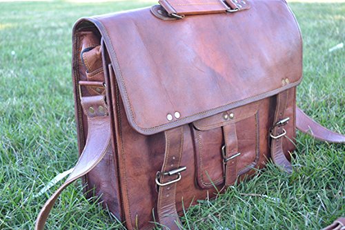 -. Title : PL 16 Inch Vintage Leather Messenger Bag Briefcase / Fits upto 15.6 Inch Laptop