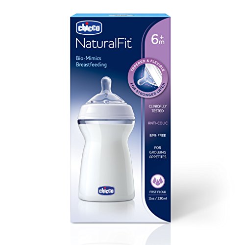 CHICCO NATURALFIT 11 OZ. BABY BOTTLE 6M+ FAST FLOW STRAIGHT NIPPLE, MADE IN ITALY