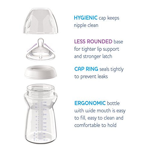 Our NaturalFit Baby Bottle's wide neck, no-mess design is easy for parents to assemble, prep, fill and clean. The larger 11 oz bottle's ergonomic shape is easy for little hands to hold as baby starts self-feeding. Made from high-quality and durable materials, our easy-to-hold baby bottle shape and innovative nipple nurture a perfect latch and ideal bottle feeding position.