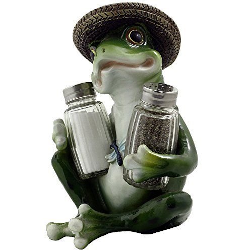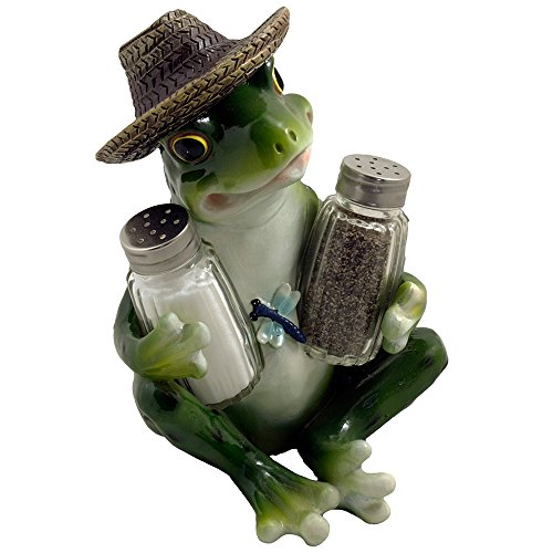 Decorative Country Frog & Dragonfly Glass Salt and Pepper Shaker Set with Display Stand Figurine Sculpture for Country Kitchen Table Decor or Whimsical Dining Room Decorations & Collectibles As Unique Housewarming Gifts by Home-n-Gifts