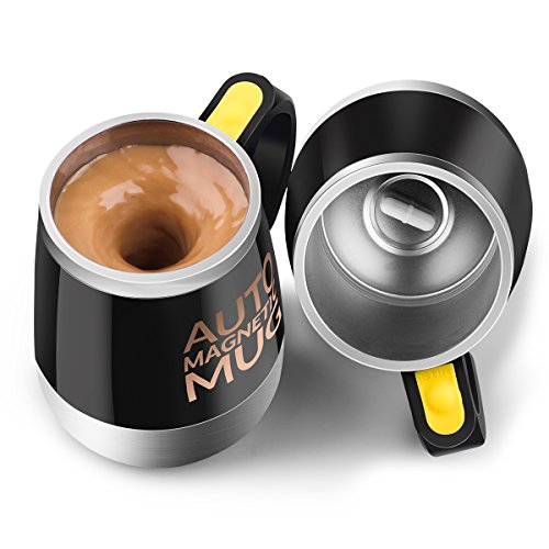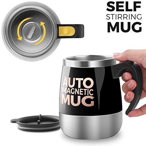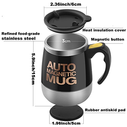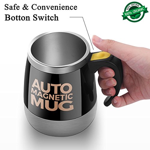 MAGNETIC SELF STIRRING TECHNOLOGY - Unique small magnet design. Cup body at the bottom of the built-in magnetic device to drive the magnetic rods can be heated at high speed to stir the cup of drinks. A premium quality fluid motor works promptly upon the press of a button.Use 2 x AAA battery (NOT included)