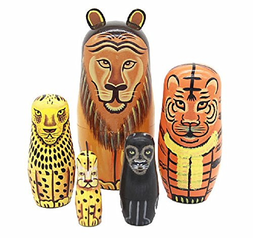 -. Title : CynKen 5pcs Lion Tiger Cheetah Lovely Handmade Nesting Dolls Matryoshka Dolls Russian Dolls Set Kids Girls Gifts Toy Home Decoration