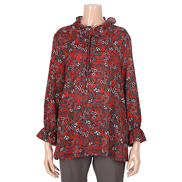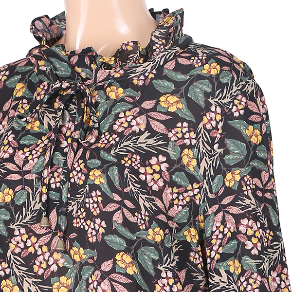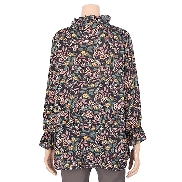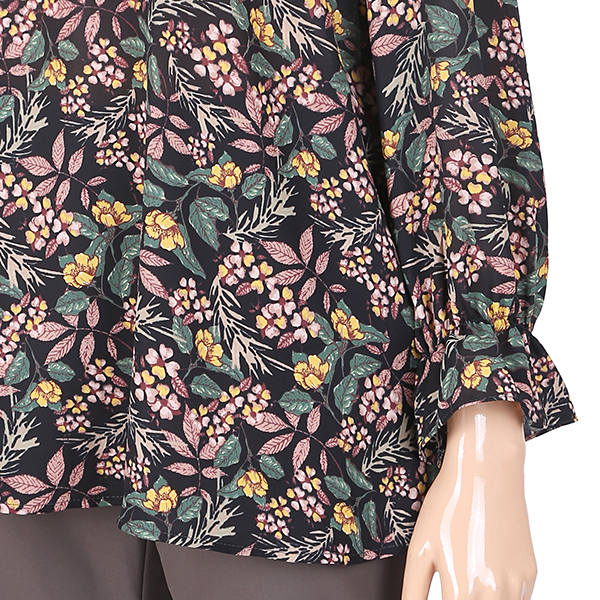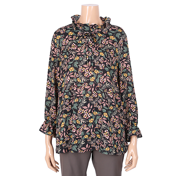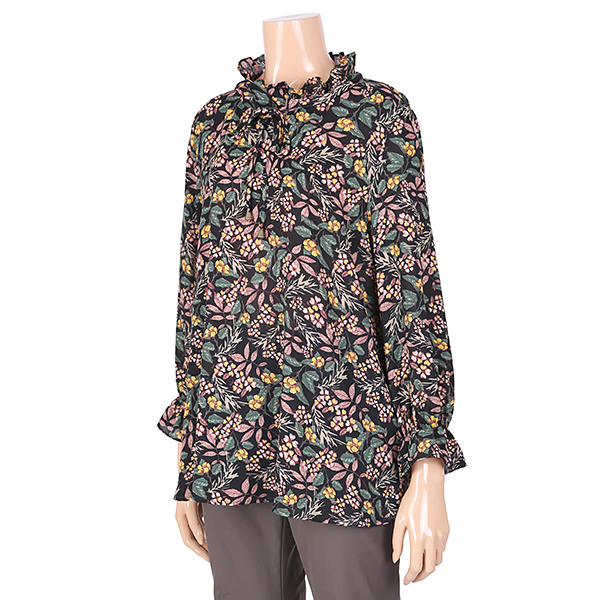여성스러운 꽃나염이 예쁘고 프릴목선이 매력적인 블라우스입니다
