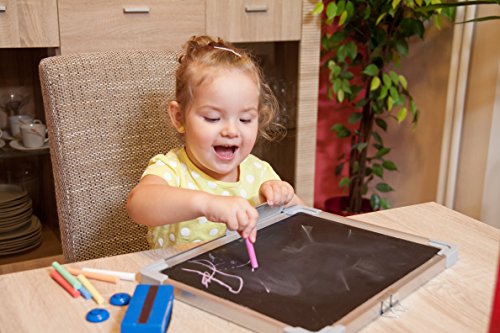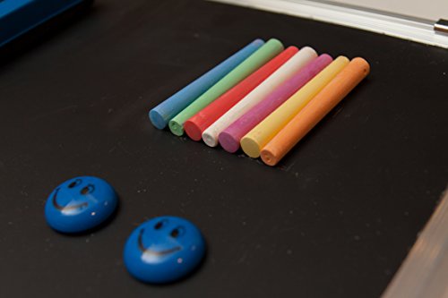 - Feature : PREMIUM SET - contains 1 chalkboard + 1 magnetic chalk eraser + 14 chalk crayons (7 colors) + 2 magnets. Best value. REMINDER: The board surface is covered by protective plastic film. Before use, cut along the board frame and tear off the film from the corner. / COMFORTABLE DESIGN AND SIZE - exact size of the board is 15" x 11.8". Movable hanging hooks allow to adjust hanging distance easily. Attachable chalk tray is also included to keep chalk markers, erasers and other board accessories handy. / TOP QUALITY MATERIAL - resin-painted steel surface is easy for writing, painting, drawing and erasing. Aluminum frame lends a contemporary and durable design element. / MULTIFUNCTIONAL USE - delivers effective performance when planning and organization is needed. Suitable for home, office, school, dorm room or any other place. Great help for managers, teachers, students and kids. Perfect for presentation, drawing and education. / 100% SATISFACTION GUARANTEED - Backed By Our Lifetime Warranty. If you for any reason are not happy with the chalkboard, please let us know, we'll refund your money immediately, no questions asked.