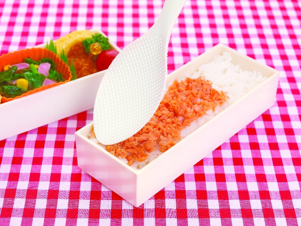 "Standing lunch box Shimoji White" is a thin paddle and easy to scoop rice paddle.