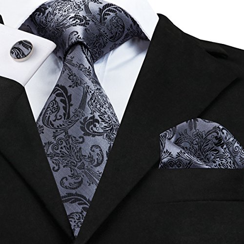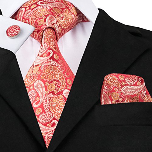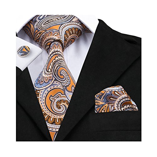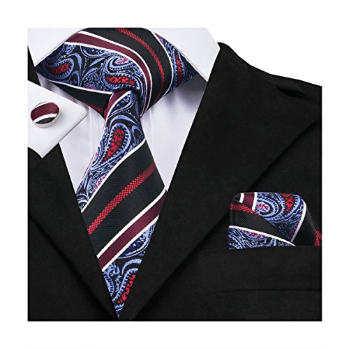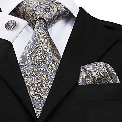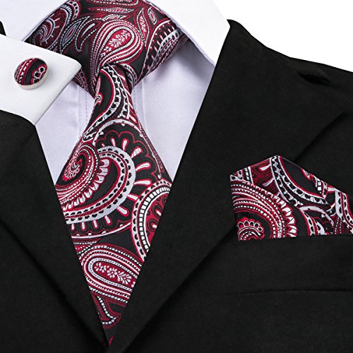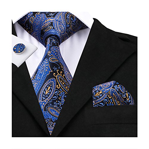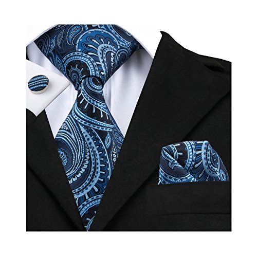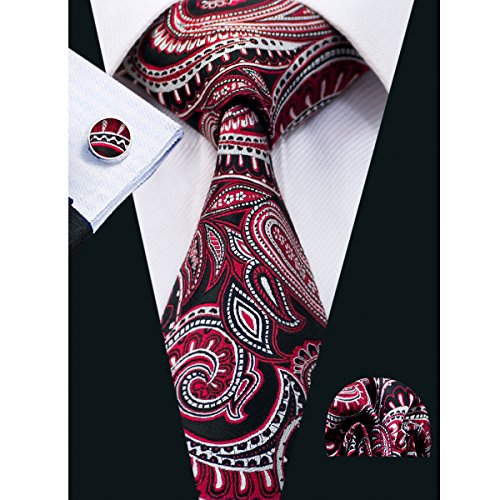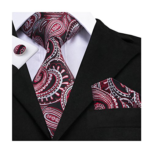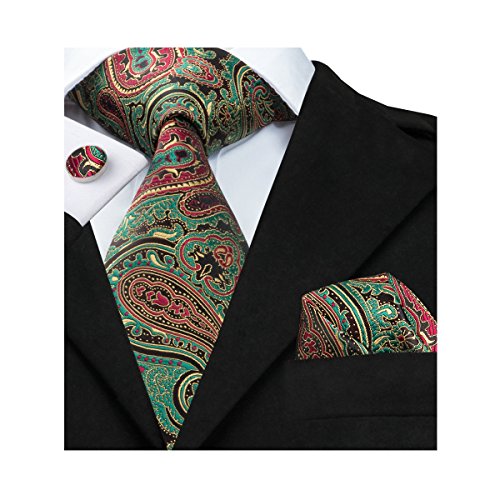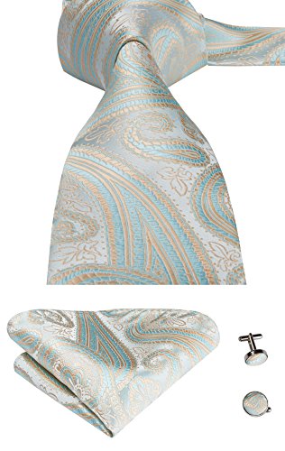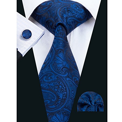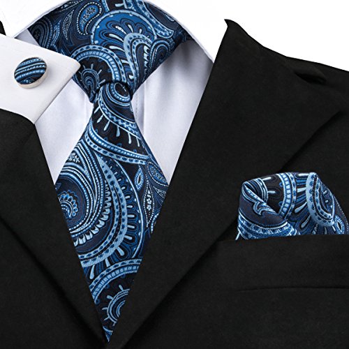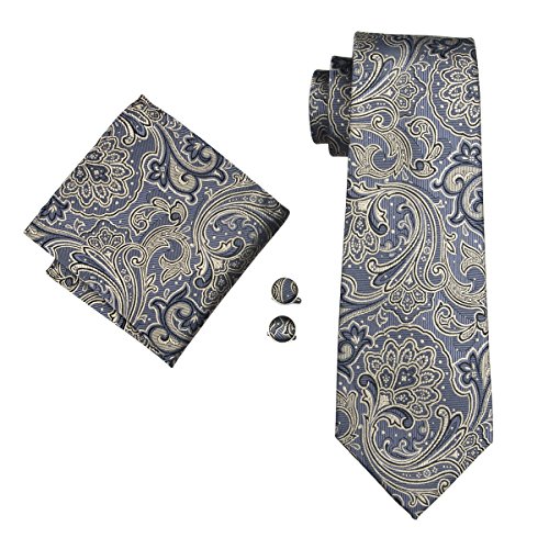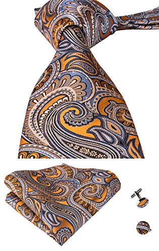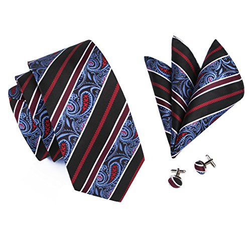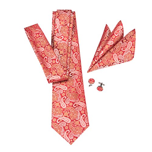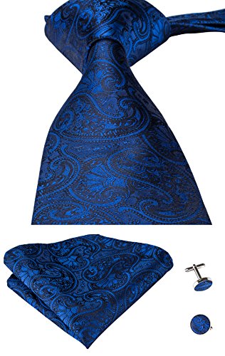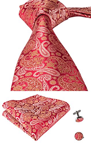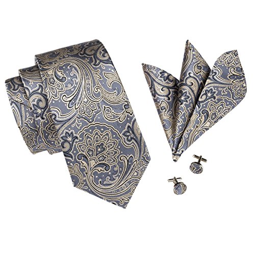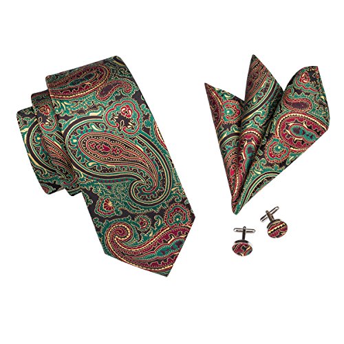 | Hi-Tie Mens Paisley Woven Silk Tie Hanky Cufflinks set |
