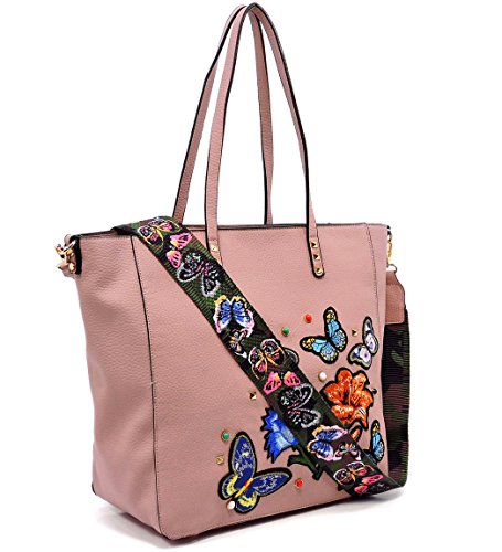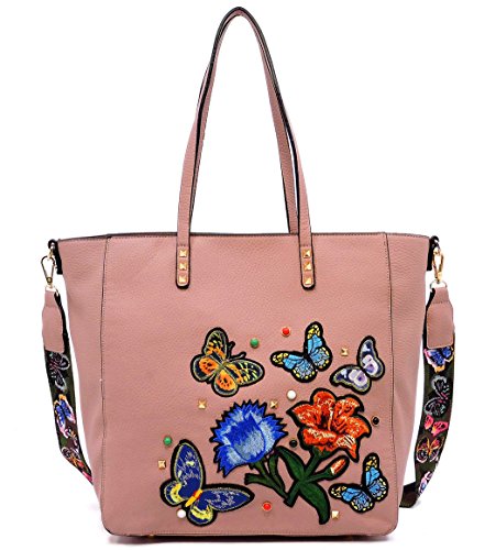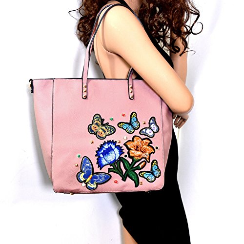 VIETA RILEY BUTTERFLY ACCENT TOTE W/ MATCHING STRAP - Pink