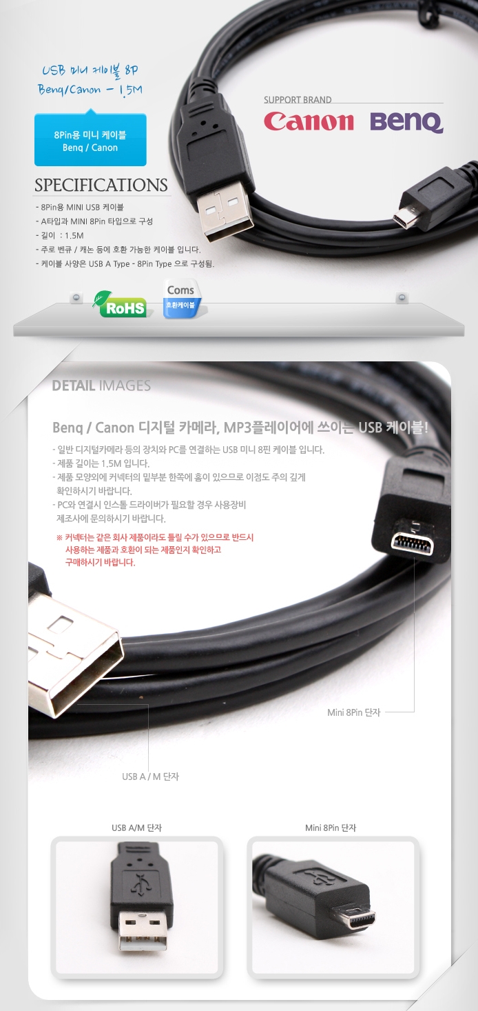 BenQ Canon 8P USB mini cable, mini-cable 1.5M
