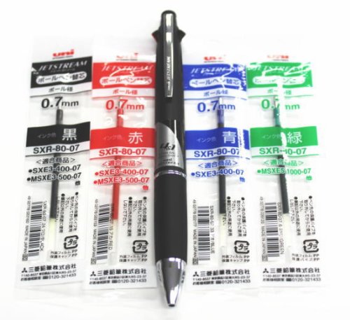 Uni-ball Jetstream 4&1 4color 0.7mm Ballpoint Multi Pen(msxe510007.24)+ 0.5mm Pencil(black Body) & 4colors Ink Pens Refills Value Set(with Values Japan Original Discription of Goods)