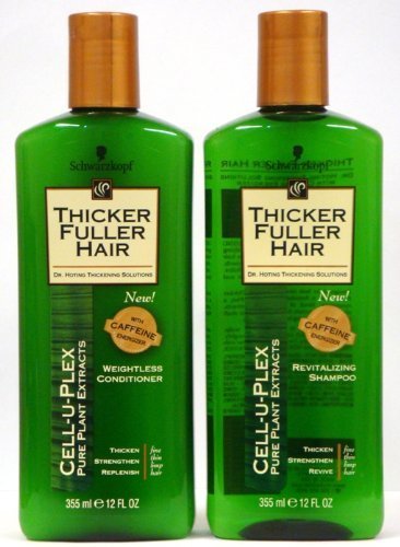 -. Feature : Formulated with Cell-U-Plex, a synergistic blend of pure plant extracts, vitamins and protein that infuse the hair shaft to thicken, strengthen and improve hair's overall vigor. / Formulated with caffeine to prop up the hair strand and invigorate and energize the scalp. / Cell-U-Plex blend of pure plant extracts infuses the hair shaft to instantly bodify and amplify fine, thin hair. / Thicker Fuller Hair is designed for both men and women / Duo Set: One Revitalizing Shampoo 12 Oz & One Weightless Conditioner 12 Oz