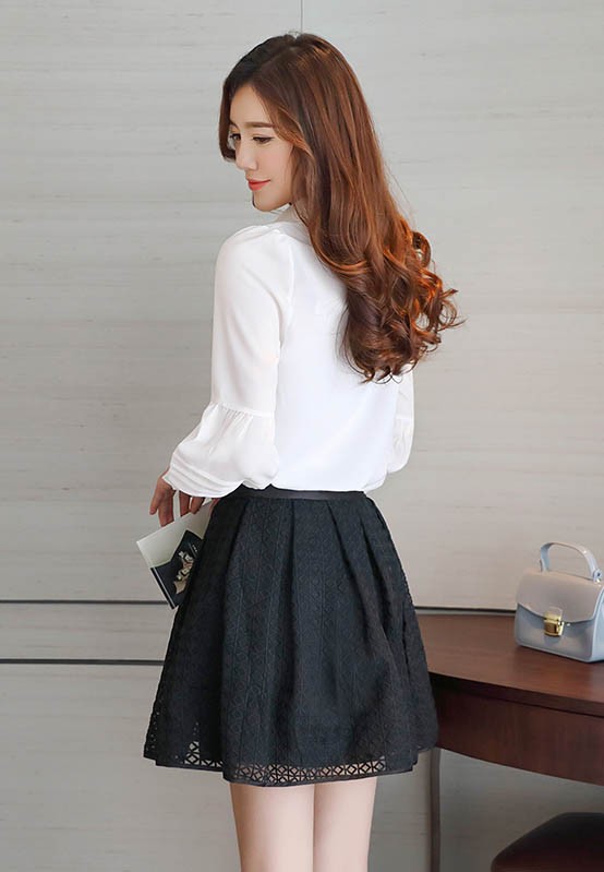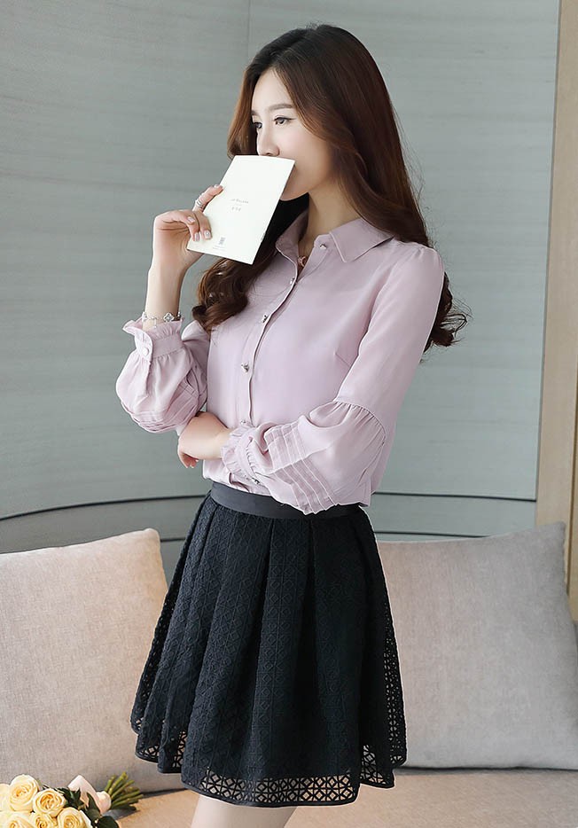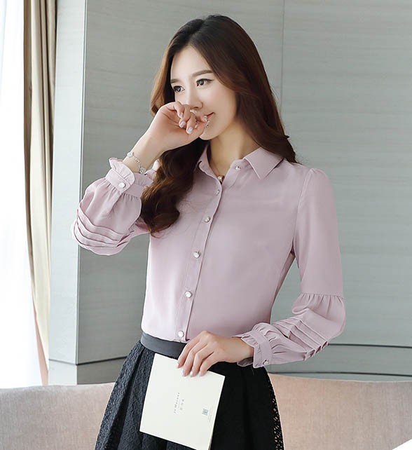 【入荷後営業日2,3日以内出荷予定 通関待ちや不良により出荷遅くなる場合はメールにてご連絡いたします。メール受信設定によっては正常に受信されない場合はございますので、 弊社からのメールを予め受信頂くようご設定くださいませ。】 トップス シャツブラウス シャツ ブラウス バルーンタイプ フリル 長袖 レディス レディース 春 新作 2018バルーン袖シフォンブラウス◆素材:ポリエステル