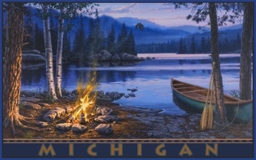 NORTHWEST ART MALL MICHIGAN LAKE CAMPFIRE WALL ART BY DARRELL BUSH, 11-INCH BY 17-INCH