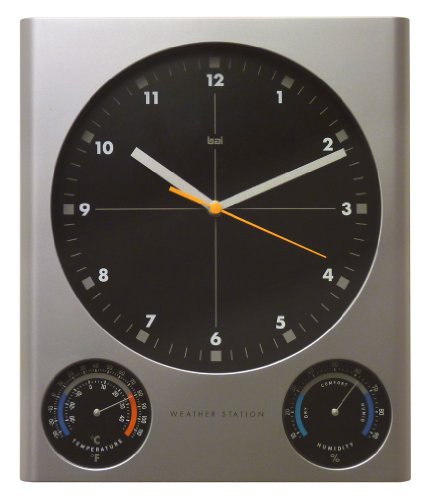 -. Title : Bai Tank Weather Station Wall Clock, Silver