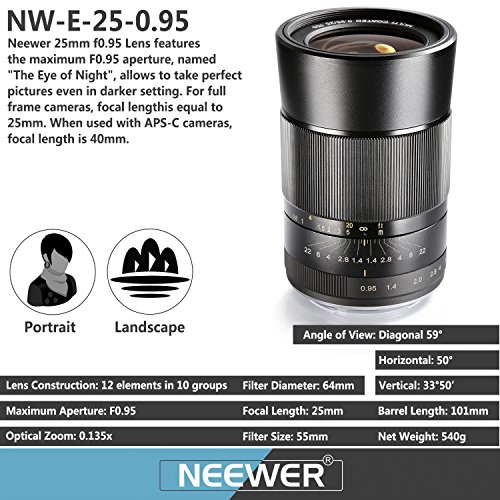 Neewer 25mm f/0.95 Manual Focus Prime Fixed Lens for SONY E-Mount APS-C Digital Cameras, Such as NEX3, 3N, 5, 5T, 5R, 6, 7, A5000, A5100, A6000, A6100 and A6300 (NW-E-25-0.95)