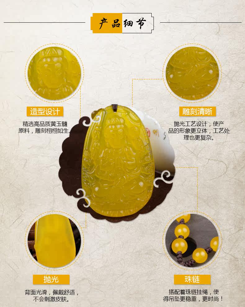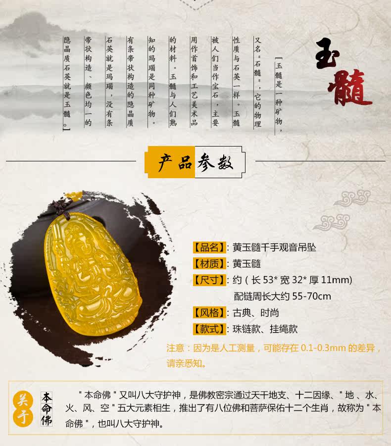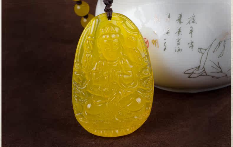 开光黄玉髓千手观音吊坠 生肖属鼠本命佛守护神男女