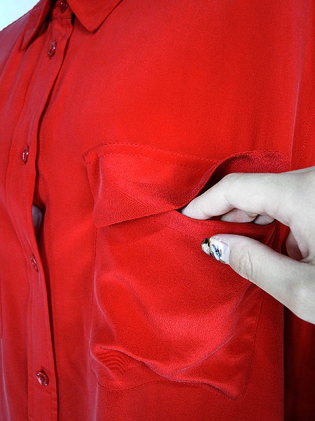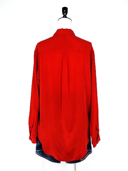 Ladies ブランド- カラー赤 メール便不可 コンディション★★★ 素材シルク 表記サイズM 実寸サイズ 着丈 74・78 cm 身幅 58 cm 肩幅 47 cm 袖丈 59 cm ※ウエスト・ヒップ以外は平置き採寸