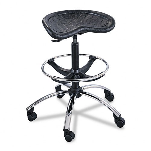 -. Title : Safco : Sit-Star Stool with Footring & Caster, 27-36h Seat, Black/Chrome -:- Sold as 2 Packs of - 1 - / - Total of 2 Each