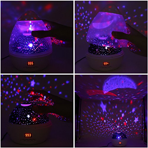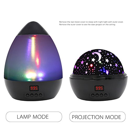 - STAR PROJECTOR: Newest adorable egg shape. With removable outer cover, you can operate it as a night light or enjoy an wonderful stars show. Warm Tips: Must set time greater than 0 then lighting buttons and rotation button will be set to be effective. On/off and restart the time are the same button.