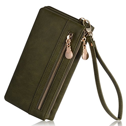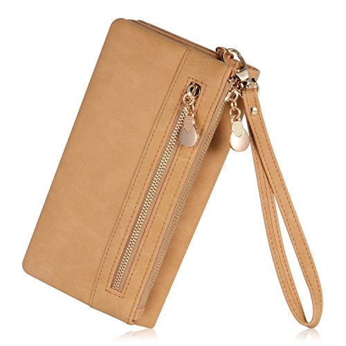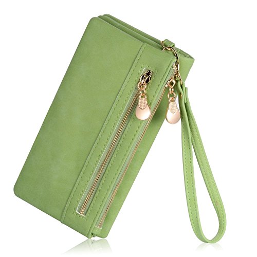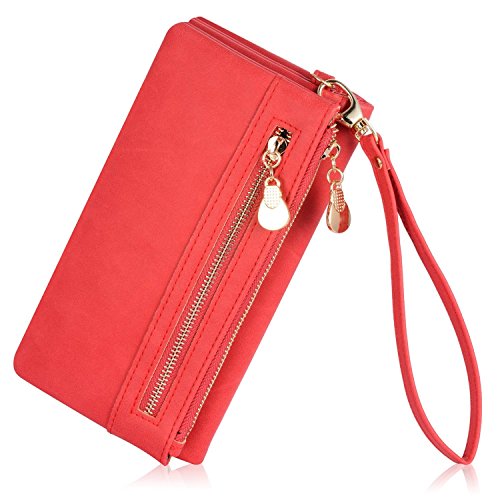 Leiwo Women's Matte PU Leather Double Zipper Coin Purse Card Holder Wallet Rosered