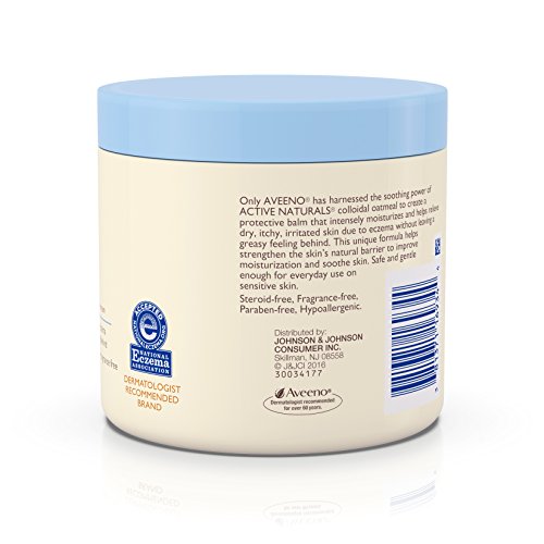Get immediate relief from dry, itchy skin with Aveeno Active Naturals Eczema Therapy Itch Relief Balm. Designed to be gentle enough for everyday use on sensitive skin, this eczema cream provides long-lasting itch relief for up to six hours by harnessing the soothing power of Active Naturals Colloidal Oatmeal. The unique hypoallergenic formula helps strengthen the skin's natural barrier, leaving your skin feeling soft, smooth, and moisturized all day long. Free of steroids, fragrances, and parabens, this non-greasy eczema relief cream leaves skin feeling comfortable and moisturized all day long, so you can look and feel your best.Feature