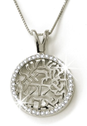-. Feature : Elegant Shema Israel necklace pendant, Jewish jewelry adorning the sacred daily prayer in a 925 sterling silver cut out. The Jewish pendant is embellished with clear white cubic zirconia stones circumferencing the round pendant / Shema pendant is available in either a 0.8" or 1.4" 925 sterling silver pendant and suspends from an 18" or 20" 925 sterling silver chain / 40 AAA graded cubic zirconia stones are inlaid into the blissful circular prayer pendant / Arrives in a lovely jewelry gift box, ready for giving or receiving / Shema Israel, the sacred daily prayer recited in Judaism makes a beautiful addition to any faithful follower. Make this Jewish pendant that special gift for any occasion, whether it be for your wedding, bat mitzvah, Hanukah, anniversary or just because.
