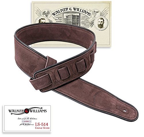 -. Title : Walker & Williams LS-514 Cognac Premium Suede Guitar Strap with Black Piping
