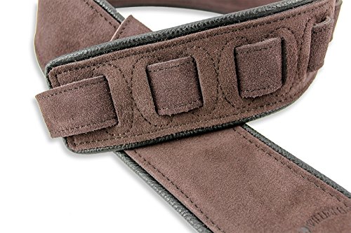 -. Feature : Premium Quality Suede Leather Strap For Guitar or Bass / Cognac Brown Seamless Top & Back Welts / Black Glove Leather Piping / Double Reinforced End Caps / 3" Wide and Adjustable From 47"-52"