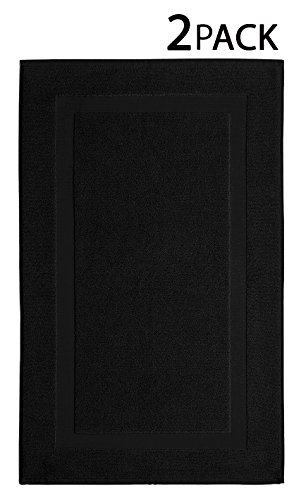 - Feature : GREAT VALUE - Set contains two Black 100% Cotton bath (tub) mats. Each mat measures 21x34 / HIGH QUALITY - Woven on European Luxury towel looms from 100% Pure 2 Ply Ringspun Cotton with sewn edges for long wear. / CLASSIC STYLE - Bath mats are rectangular in shape with a classic border band design. / HEAVY WEIGHT - 1000 grams per square meter construction equals 461 grams or 16.26 ounces for each mat. / EASY CARE - Easy care machine wash and tumble dry