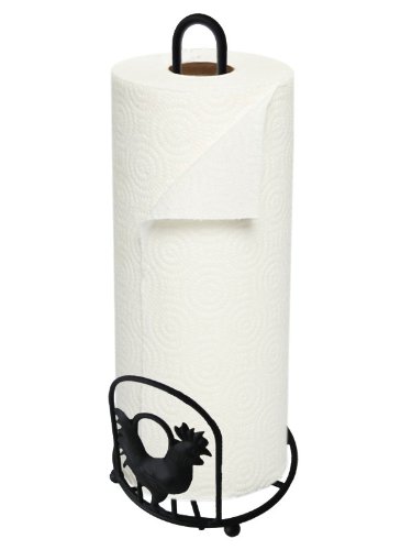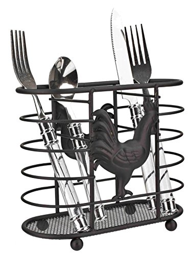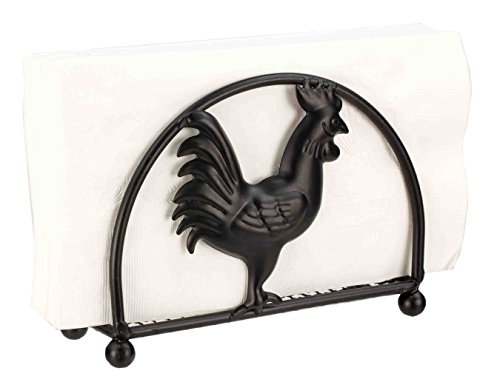 Deluxe Rooster Collection 3pc Kitchen Table Décor Set, Cutlery Holder, Napkin Holder, Paper Towel Stand - Black