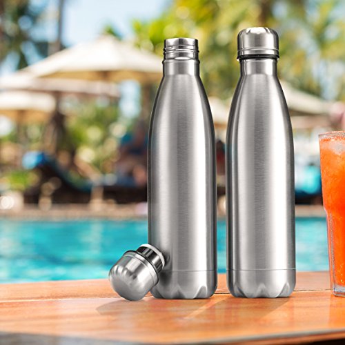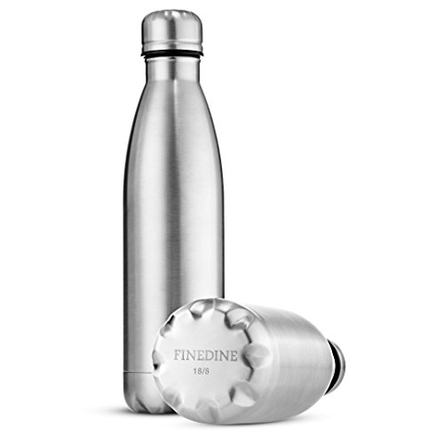 - The FineDine stainless steel water bottle set of 2 features double-walled 18/8 gauge heavy duty metal that’s vacuum sealed with an inner stainless steel lining and a leak-proof twist on lid that increases thermal insulation allowing beverages to stay hotter or colder for longer.