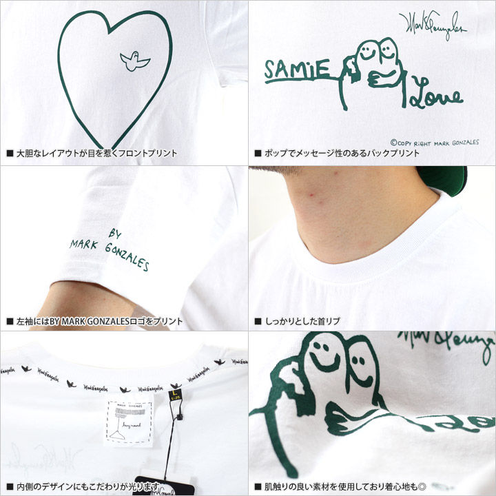 温もりと遊び心が溢れるポップなイラストが好印象なTシャツ。フロントには思わず目線が行ってしまうMG BIRDとハートが絶妙にマッチしたプリントが配され、極め付けメッセージ性の高いバックプリントなど贅沢なデザインがオススメポイントです。カラバリも全5色と多く、ついついカラー違いで持っておきたくなってしまう逸品。