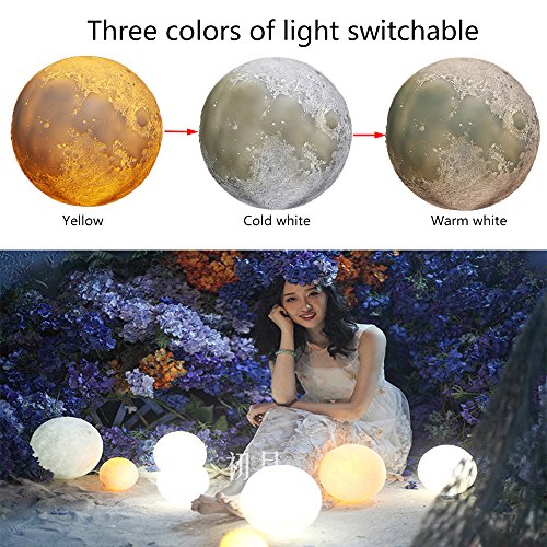 LAWHO 3D Printing Moon Lamp LED Night Light 5.9Inch 3 Colors Dimmable Vibration Control Bedside Table Lamp Baby Nursery Lamp for Kids Bedroom Home Decorative Birthday Christmas Gifts
