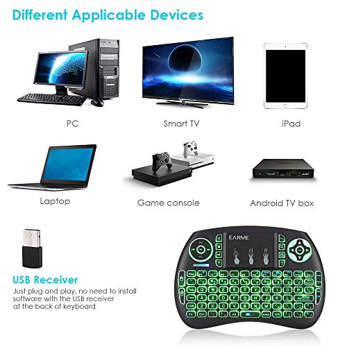 ☑This touchpad wireless mini keyboard has 3 color RGB backlit, you can change the color just press Fn + F2 button, which makes you look more fantastic.