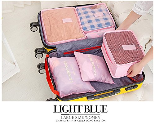 Pack More Clothes in a Small Space For Your Next Trip -One of the toughest things to do while packing for a trip is fitting everything you want to bring with you into your luggage. Our packing cube system fixes that issue by neatly packing all your clothes tightly into our space saving bags. It allows you to easily store and organize your clothing that makes it easy to pack and even easier to unpack. Your clothes will stay more wrinkled free and not get crushed during your travels.We've included a laundry bag with your cube set so that you can separate your dirty clothing from your fresh clothes on your journey back home. -GREAT FOR STRESS FREE BUSINESS TRIP, Easy Family Holidays, Backpacking,Etc. -Assign a color for your kids and have fun packing together. -YKK zippers with corded double zipper pulls make openingclosing simple and fast -Not just for traveling, the Packing Cubes Set is a great home organization solution. Pack odds and ends into the cubes and then store them away in drawers, under the bed, on shelves or in the closet. It's the simple, stylish way to reduce clutter. -Have you ever been security screened and had your items publicly inspected while waiting in that long, busy line? In the end to only end up with a messed up suitcase, wrinkled clothes and a little bit of embarrassment in the process. Now you can more easily organize and conceal your personal items. We confidently stands behind their products. We will replace or refund your purchase if dissatisfied. Guaranteed for life under the Packing Cubes Lifetime Warranty GET ORGANIZED, MINIMIZE STRESS TRAVEL WISE! 0 |