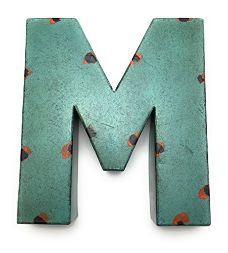 Weathered Rustic 7” Metal Wall Art Decor Alphabet Monogram Personalize Lettering, Teal with Leopard Spots (Letter "M")