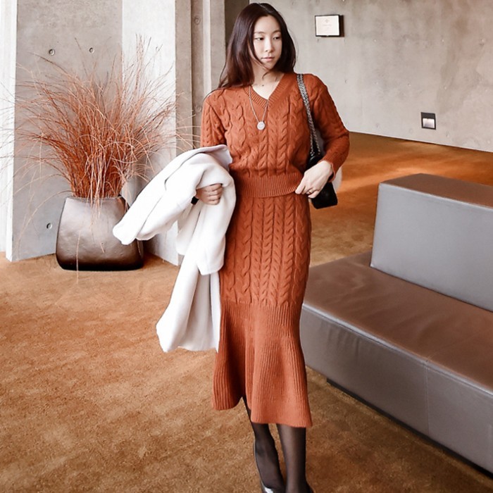★ご注意:こちらの商品はお客様がご入金後、メーカーから取り寄せさせて発送する予定です。ご入金からお届けまで約5-7営業日ほど時間がかかります。★素材:ニット★厚さ:普通★透明感:なし ★伸縮性:あり ★生産国:中国★カラー:紺色 紺色 オレンジ色★サイズ(cm):フリーサイズF:袖丈55cm 肩幅44 トップス丈49cm スカート丈70cmこの商品は普段「Sサイズ」「Mサイズ」「Lサイズ」を着ている方にオススメいたします。*あくまでご参考になります。平置き実寸サイズをご確認ください。※サイズは人の手によって測っているため、1-3cmの誤差がある場合がございます。予めご了承下さいませ。