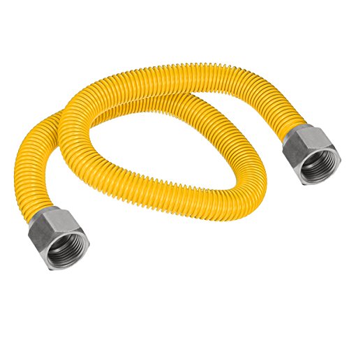 Flextron FTGC-YC14-24 22" Flexible Epoxy Coated Gas Line Connector with 3/8" Outer Diameter and Nut Fittings, Yellow/Stainless Steel